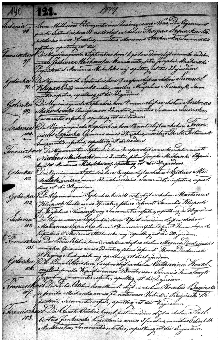 Record Number: 108 (108th death reported for Poniec Parish in 1849)