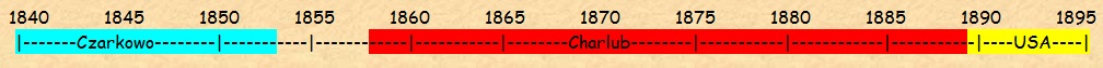 between 1853-1858 Constantin Jankowski, along with his wife Barbara and daughter Marianna moves to Charlub from Czarkowo, when Constantin accepts a job tending horses for the manor owner there. July 23, 1858 Barbara gives birth to the couple's second child, and first son, Ignatius Jankowski, in Charlub. December 27, 1858 Ignatius, aged 5 months and 4 days, passes away in Charlub, cause unknown. November 20, 1859 Daughter Katharina Jankowski is born in Charlub, the couple's third child. September 22, 1861 Barbara gives birth to twins, Michael and Stanislaus in Charlub. Michael would become Lena's dad. February 14, 1865 Marianna Jankowski, born in Czarkowo and aged 11 years and 7 months passes away in Charlub of unknown causes. April 6, 1865 Son Albert is born in Charlub, the 6th child born to Barbara, and the 4th living child. January 25, 1867 Barbara gives birth to a daughter whom she also names Marianna, in honor of her first child who passed away almost two years prior. February 23, 1868 Sadly, this Marianna also passes away at the age of 1 year, 29 days, cause unknown. November 23, 1868 Barbara gives birth to her 8th child, a son named Frank. The family now consisted of 4 sons and 1 daughter. February 11, 1871 A daughter, Francisca, is born in Charlub. October 9, 1873 Barbara's last child, daughter Hedwigla, is born. Her birth record indicates she was born in Sebastianowo. The family is now complete - 4 living sons and 1 deceased, 3 living daughters and 2 deceased. September 11, 1881 At the age of 21, daughter Katharina becomes the first of Constantin and Barbara's children to wed when she marries Antonius Baczkiewicz in the Catholic Church in Mchy. November 9, 1884 Stanislaus Jankowski marries Frances Frackowiak in Panienka, Poland at the age of 23. Frances's last name is the same as Barbara's, but there is no relation. June 27, 1888 Mike Jankowski immigrates to USA at age 26, arriving in New York City aboard the SS America, which had departed Bremen, Germany approximately 2 weeks earlier. August 1889 Constantin and Barbara, along with daughters Francisca and Hedwigla leave Charlub on their immigration journey to the USA. Accompanying them are son Stanislaus, daughter-in-law Franciska, and grandchildren, Marianna and Johann. The first leg of the journey would be overland to Bremen, Germany, presumably by train. September 12, 1889 Constantin(58), Barbara(58), Francisca(18), Hedwigla(15), Stanislaus(27), Franciska(27), Marianna(3), and Johann(9 months), arrive in Baltimore aboard the SS Rhein from Bremen, Germany. October 23, 1890 Albert Jankowski immigrates to USA at age 25, arriving in New York City aboard the SS Rhynland from Antwerp, Belgium. He is the last of the Constantin Jankowski family to leave Charlub and Poland. May 26, 1891 Frank Jankowski, age 22, immigrates to the USA aboard the SS Gera - the last of Constantin's family to leave Poland.
