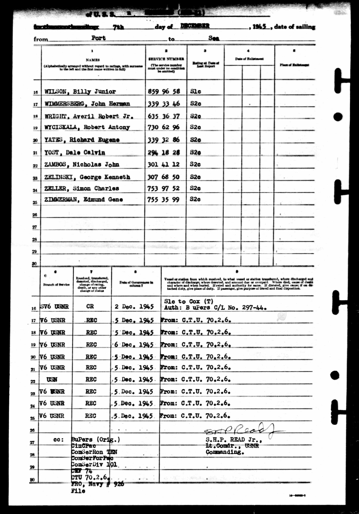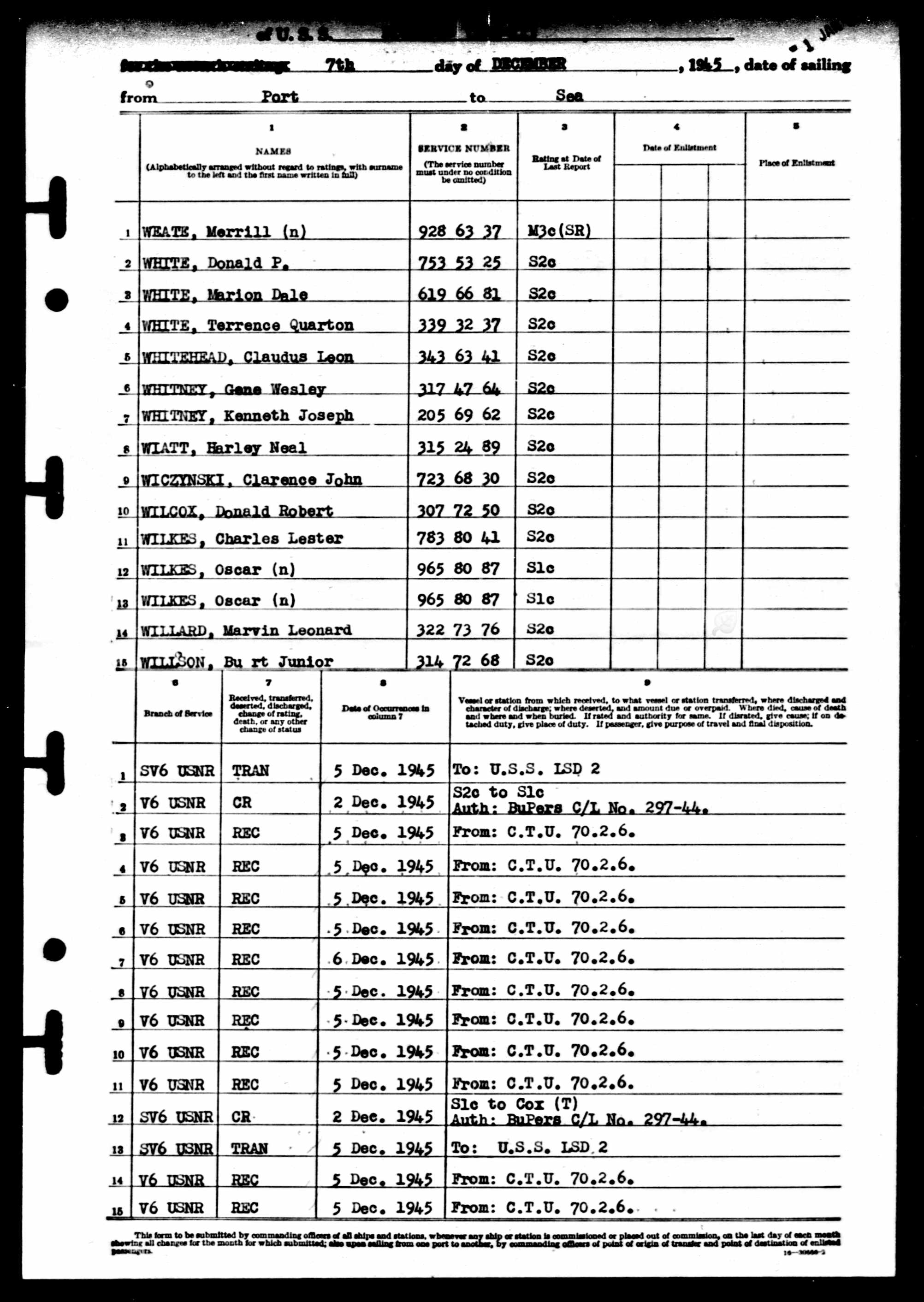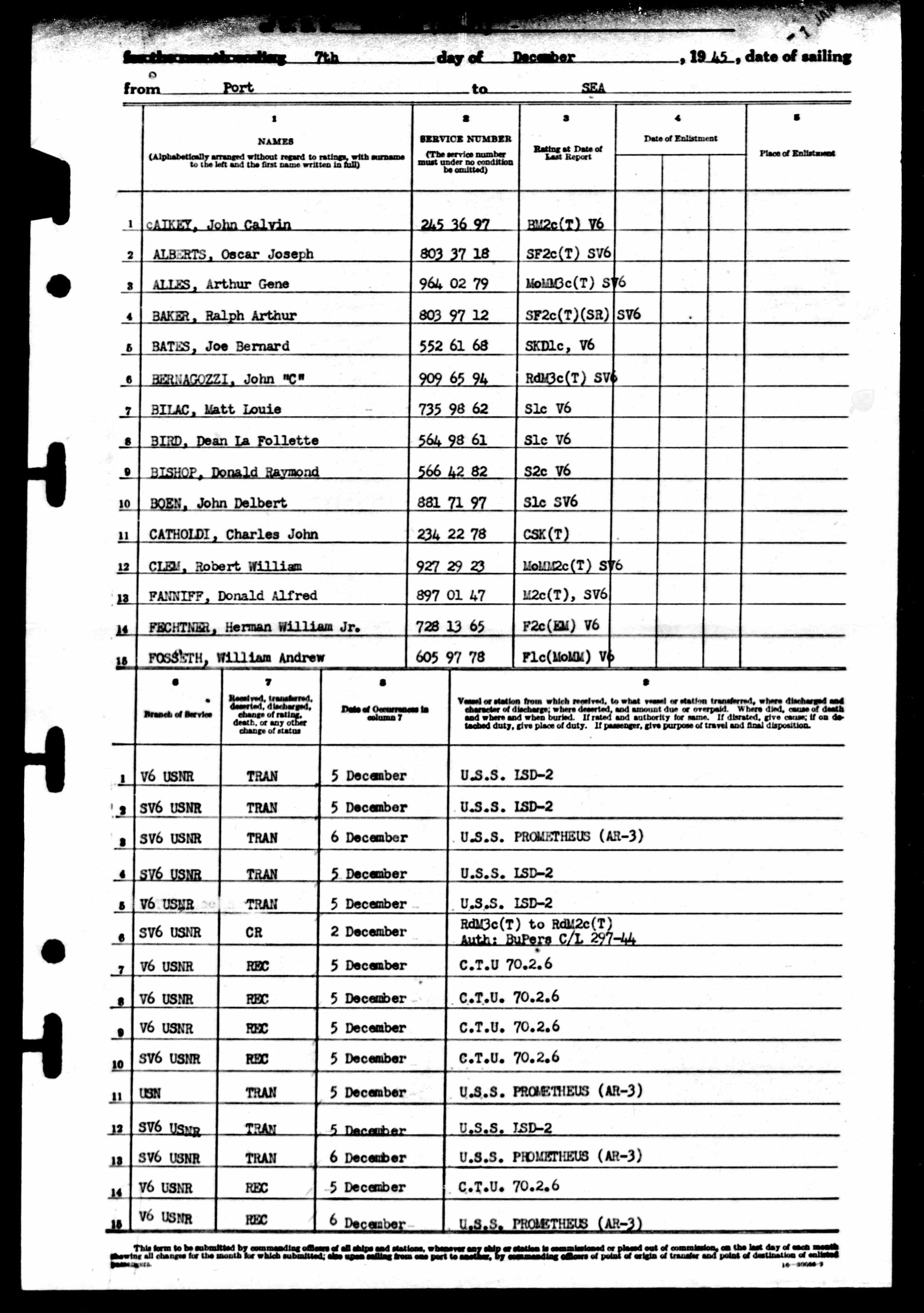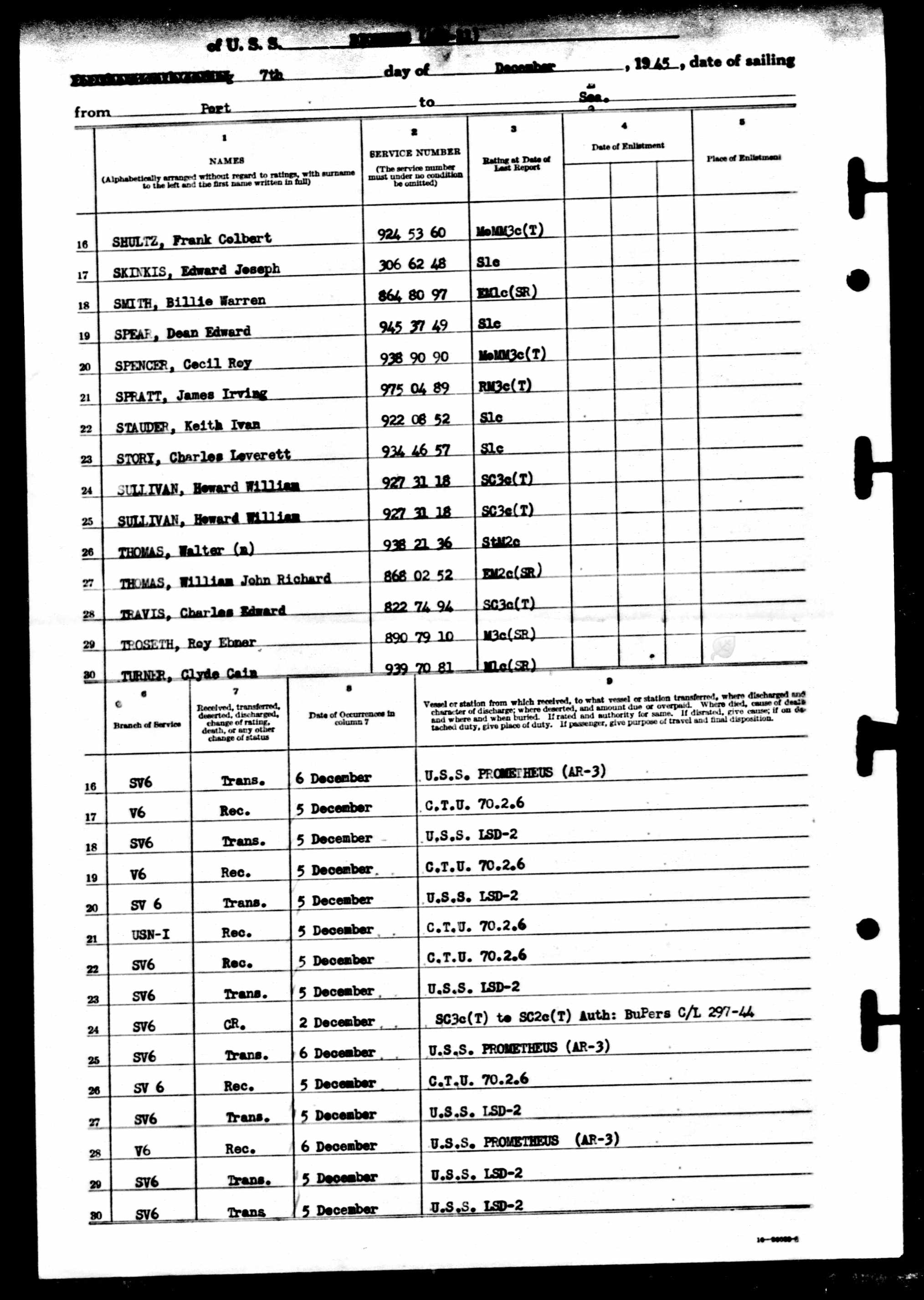 Muster Rolls dated December 7, 1945 - U.S.S. Diomedes