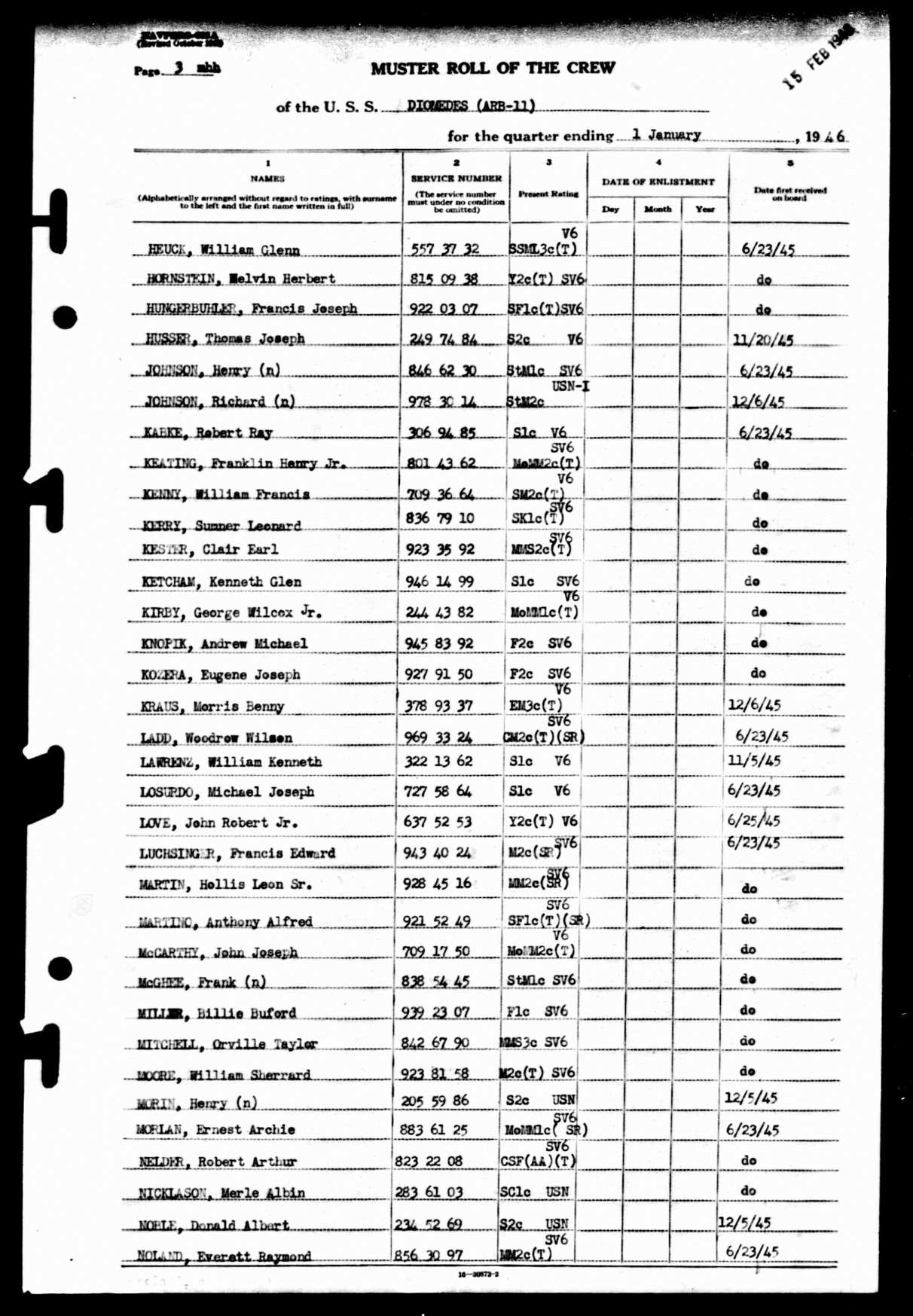 Muster Rolls dated January 1, 1946 - U.S.S. Diomedes