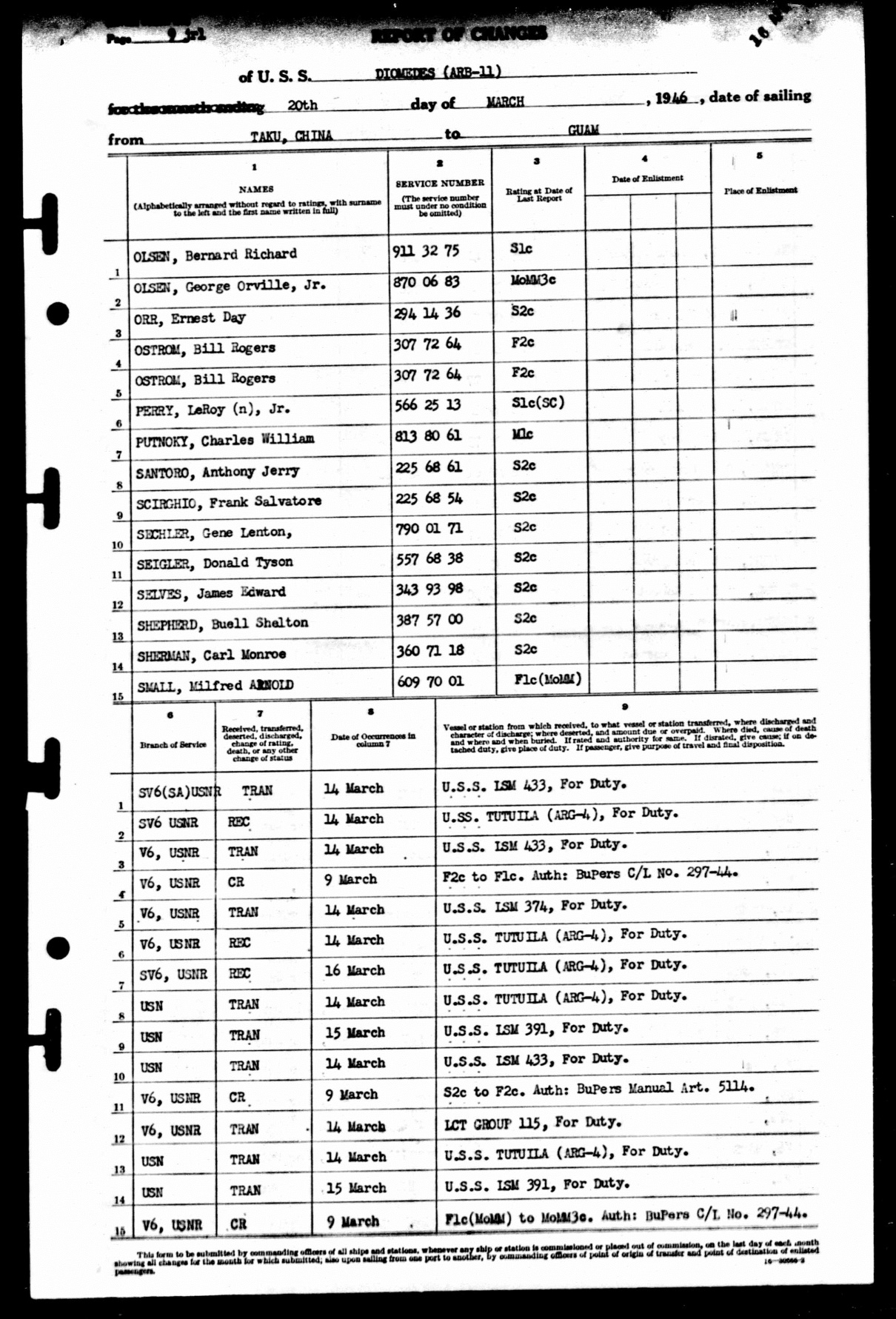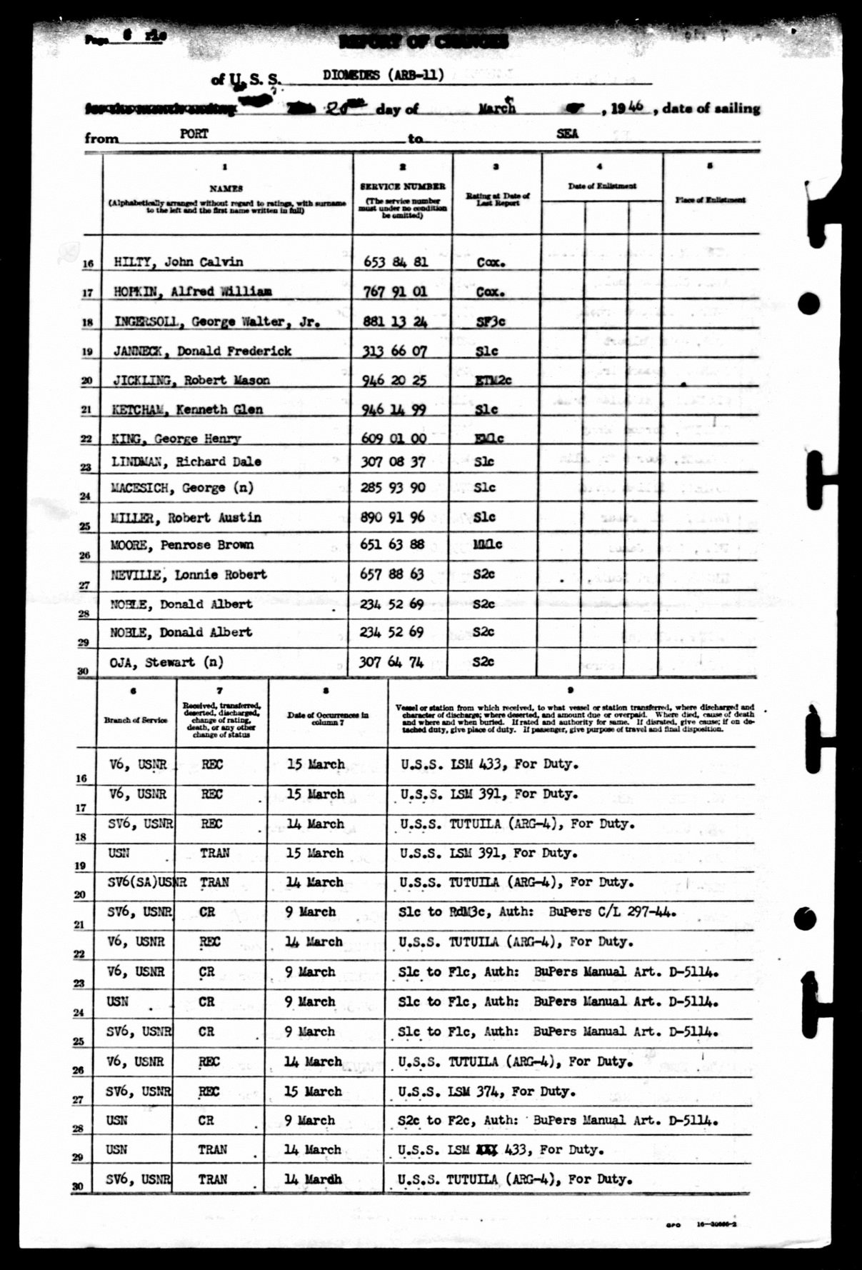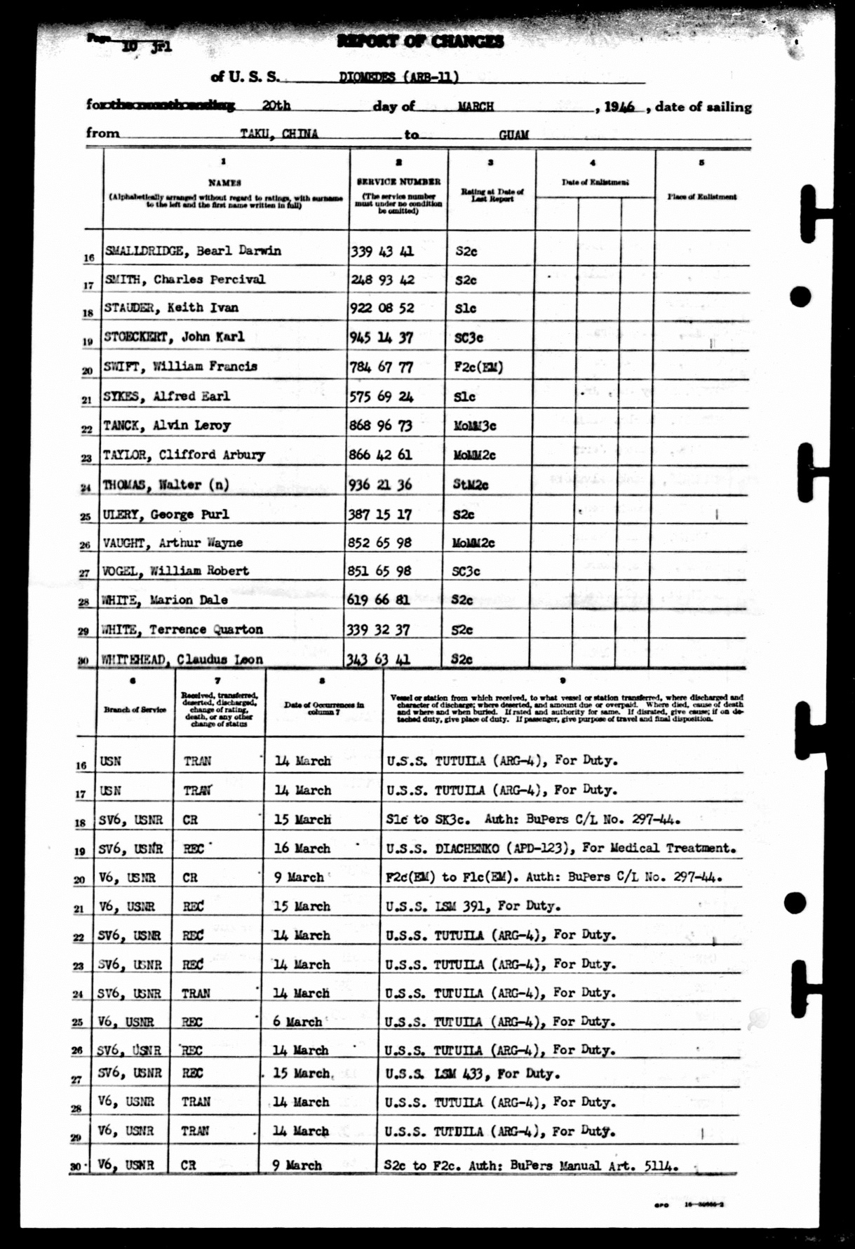 Muster Rolls dated March 20, 1946 - U.S.S. Diomedes