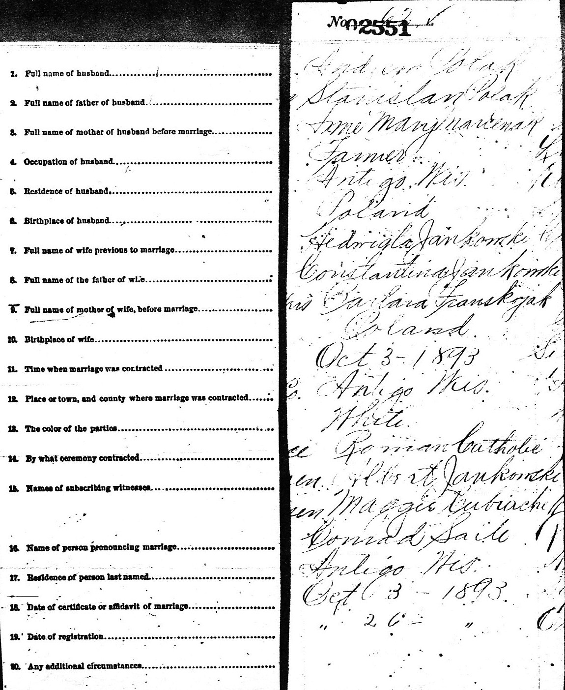 | Place of Marriage | Antigo, WI |