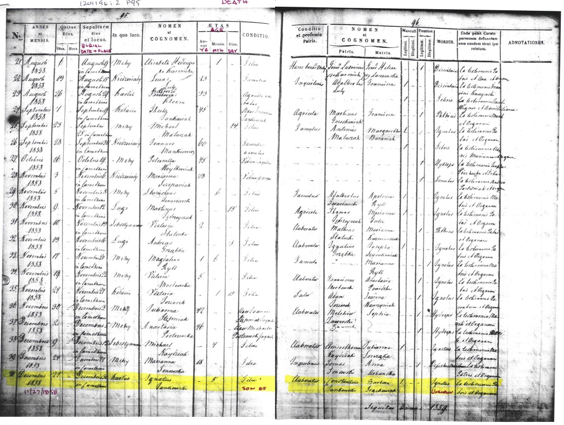 | Laborer | Constantinus Jankowski | Barbara Frackowiak | 1 | - | - | - | Unknown | ??? | |