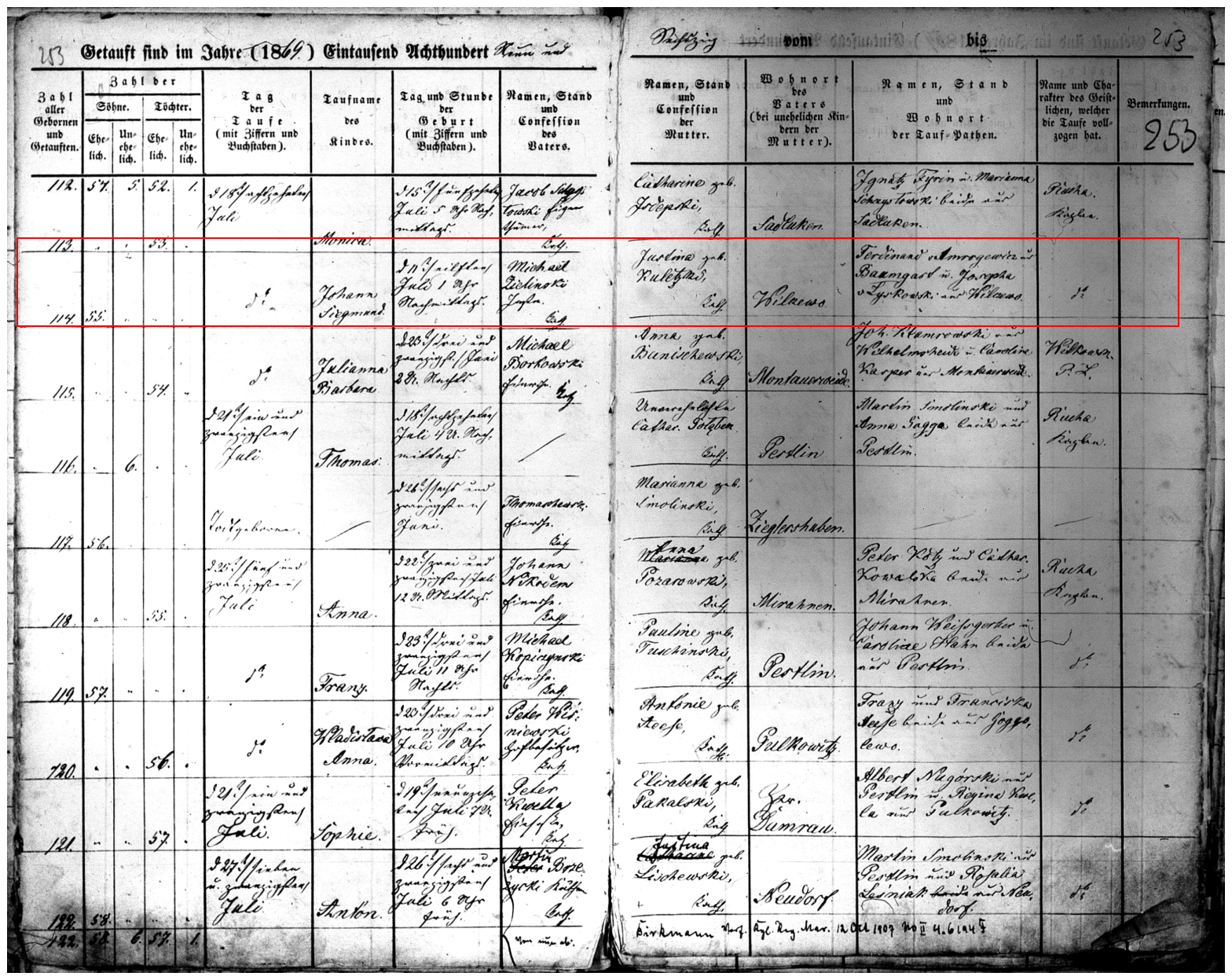 Record: 114th baptism for Pestlin Parish in 1869, 55th male, legitimate