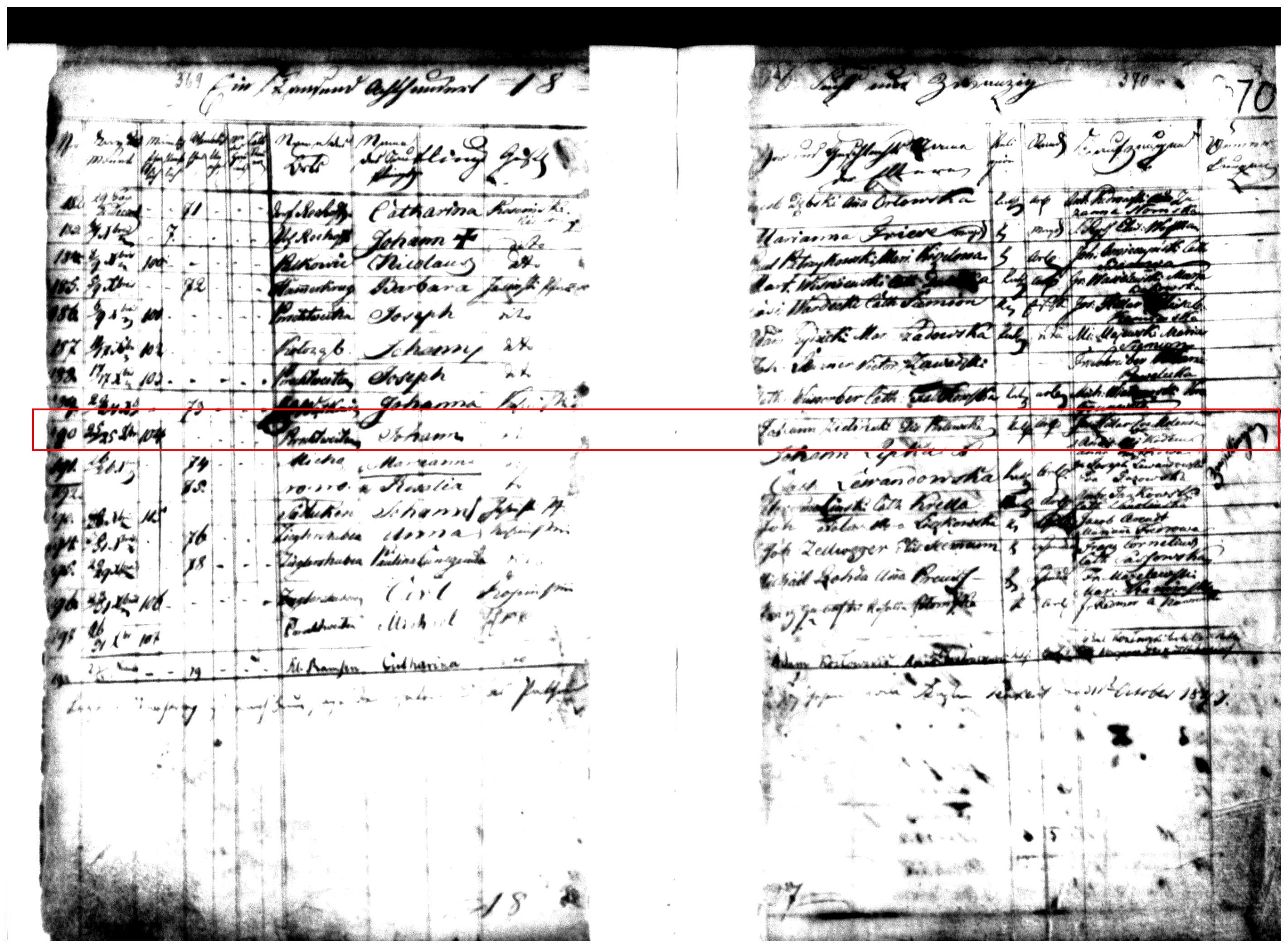 Record: 190th baptism for Pestlin Parish in 1826
