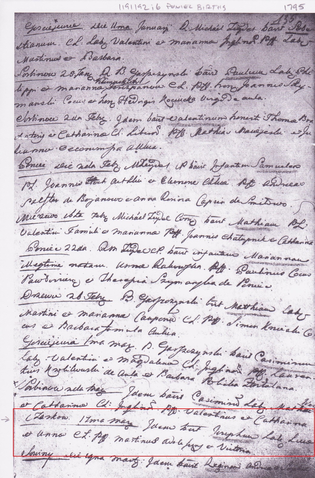 Translation Date of birth: 17 March 1795 Official: ??? Infant name: Joseph Jankowski Parents: peasant Lucas Jankowski and Anna Father's Occupation: ??? Godparents: Martin and Victoria Location: Czarkowo