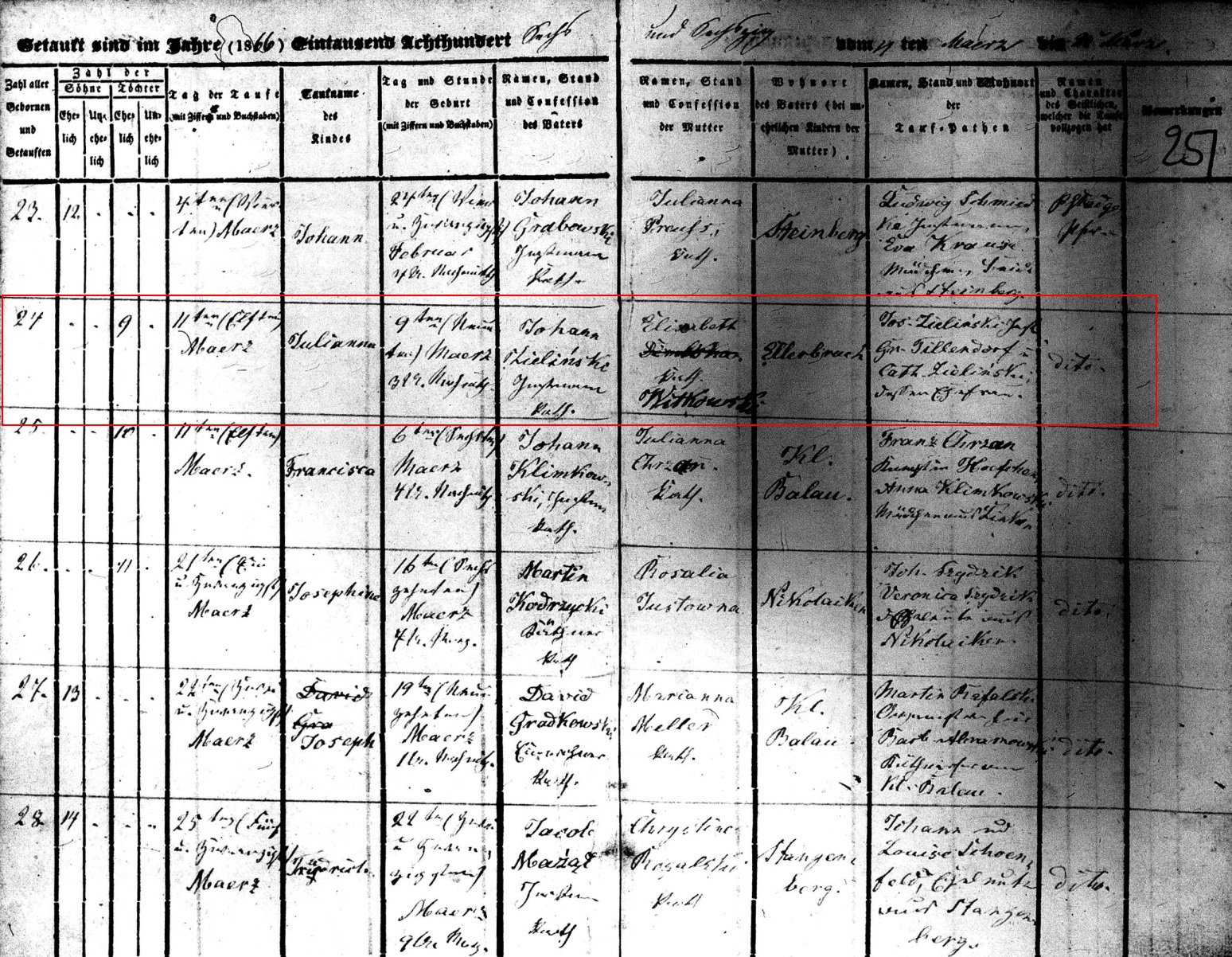 Godparents: Joseph Zielinski from Tillendorf, and Catharine Zielinski
