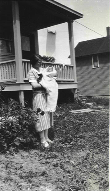 Lawrence holding Janie in the back yard of their home at 635 5th