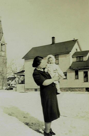 Menasha. Lena is holding Janie in the back yard of their home at 635 5th