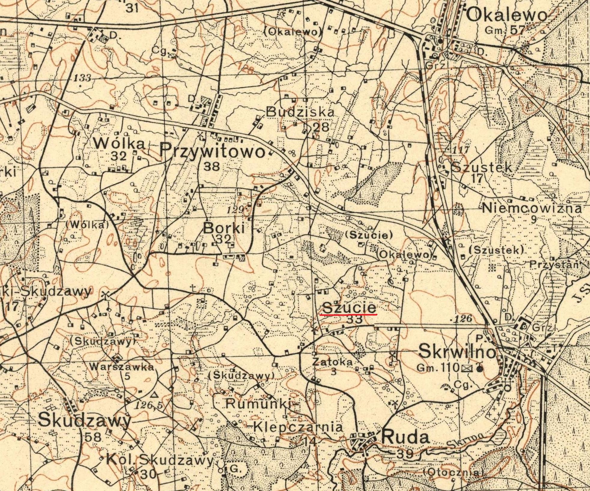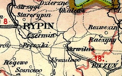 Poland (Brodzinski) 1892 Powiat Rypin large map, Szucie and Skrwilno marked 1914 Skrwilno zoomed in, with Rypin 1930 Szucie and greater Skrwilno area |