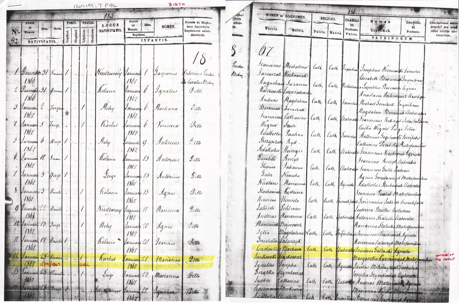 Catholic | Catholic | Laborer | Joannes Galinski | Farmer | |