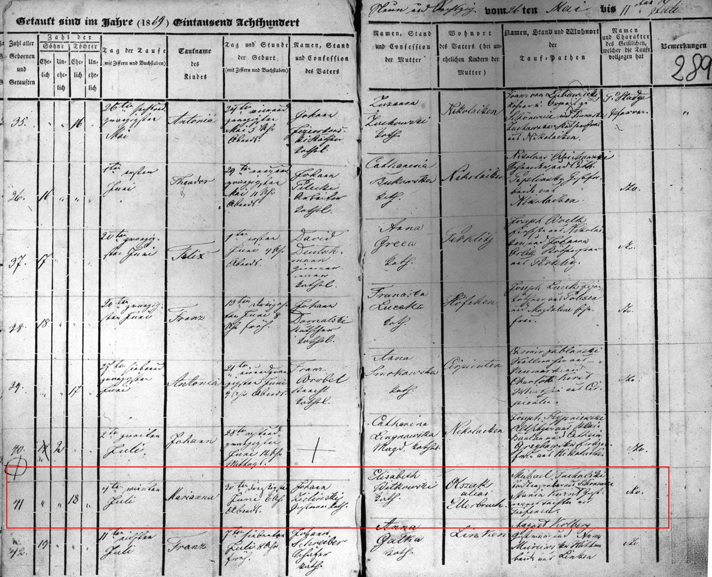 Godparents: Michael Tuchulski from Schoneweise, and Maria Kurnt from Tiefensee