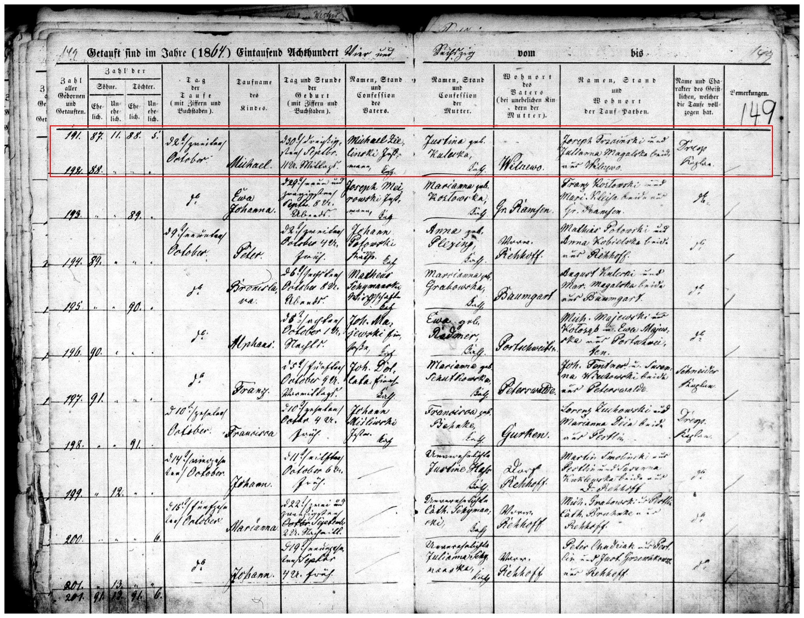 Godparents: Joseph Trzinski and Julianna Magalska, both from Wilczewo