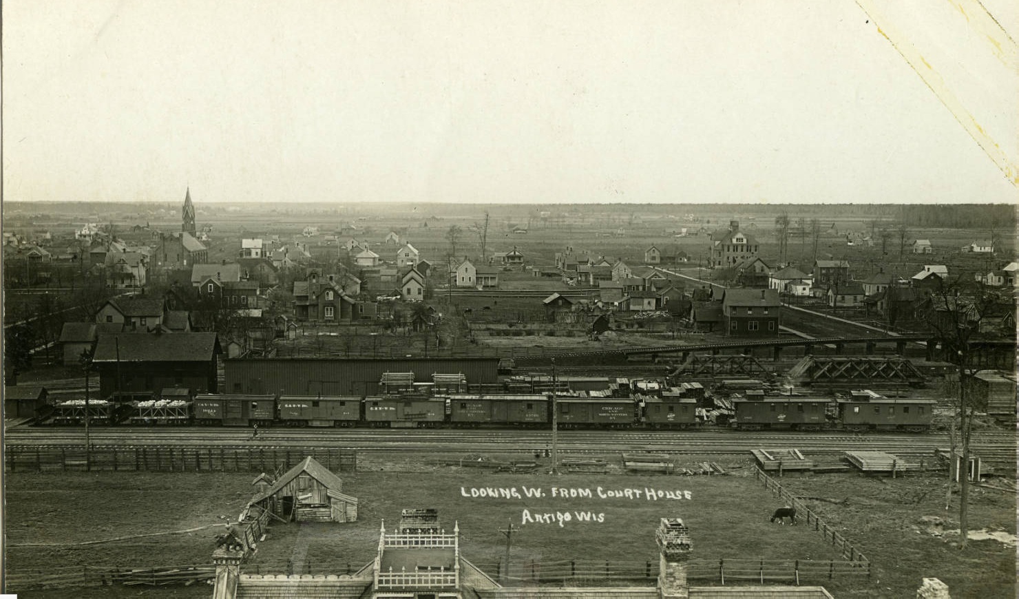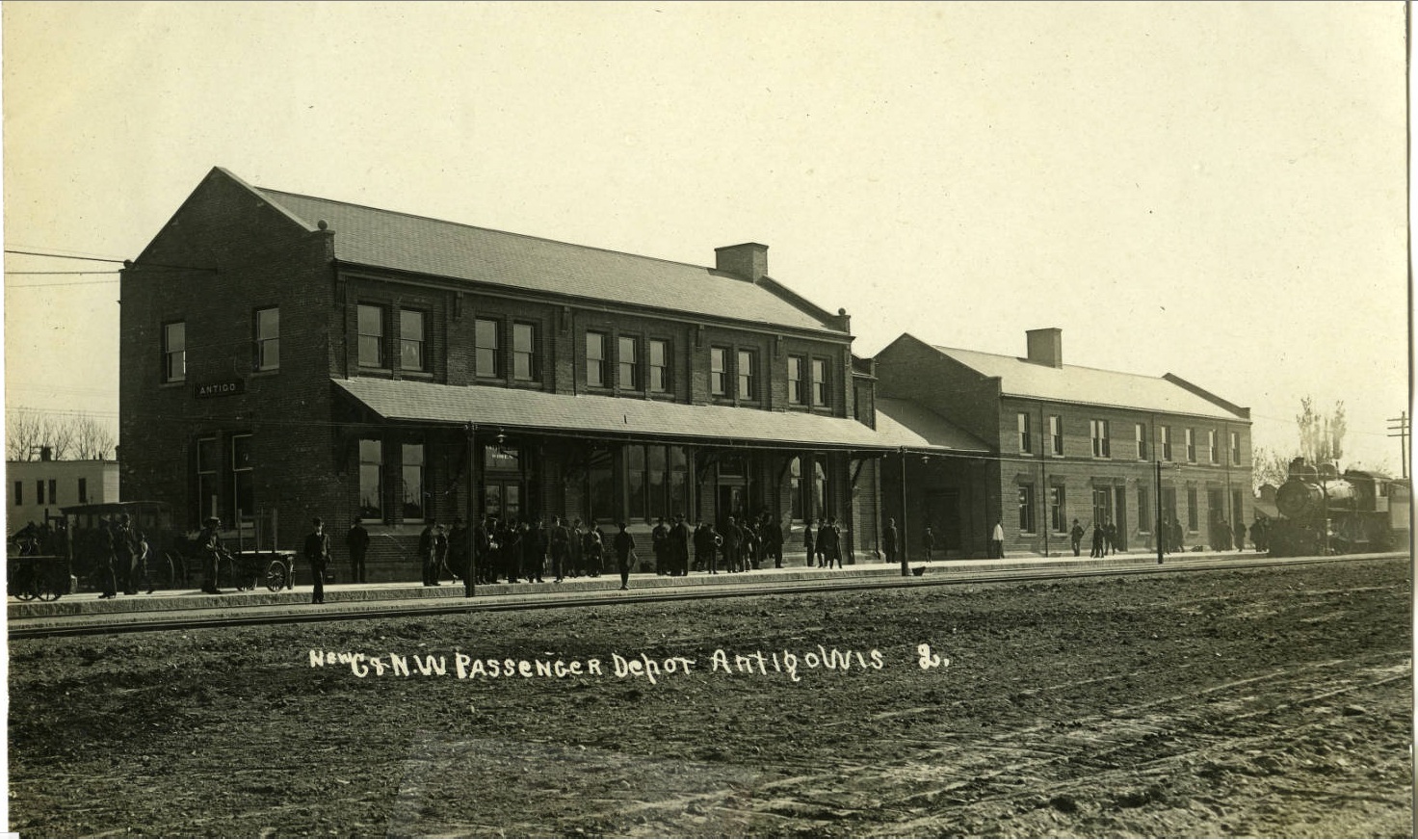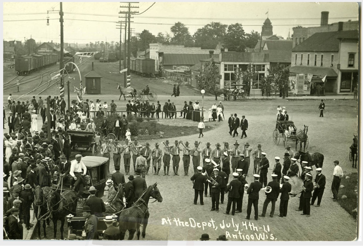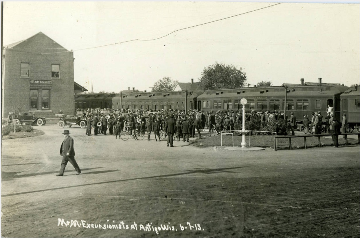 In 1881, Deleglise convinced the Milwaukee Lakeshore and Western Railroad to come thru Antigo in its northward expansion by offering free land along the proposed tracks to rail officials. The railroad laid 23 miles of track, stretching from Aniwa to Summit Lake. The first train rolled in to Antigo on August 15, 1881. This proved to be the boon that his fledgling community needed. The Chicago and Northwestern Railroad took over the Milwaukee Lakeshore and Western in 1893, and from then on, the growth of Antigo and the railroad were intertwined.