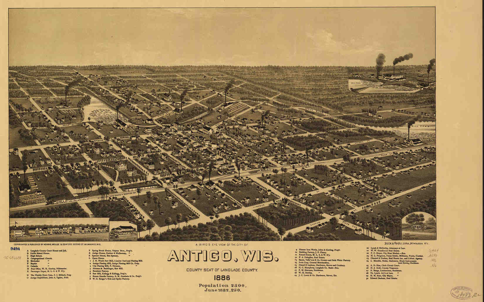 As early as 1876, Deleglise had begun mapping out his town and laying out roads, Deleglise purchased the land which was to become Antigo from the U.S. government, then set about recruiting settlers, industries, churches, and business interests to come to Antigo.