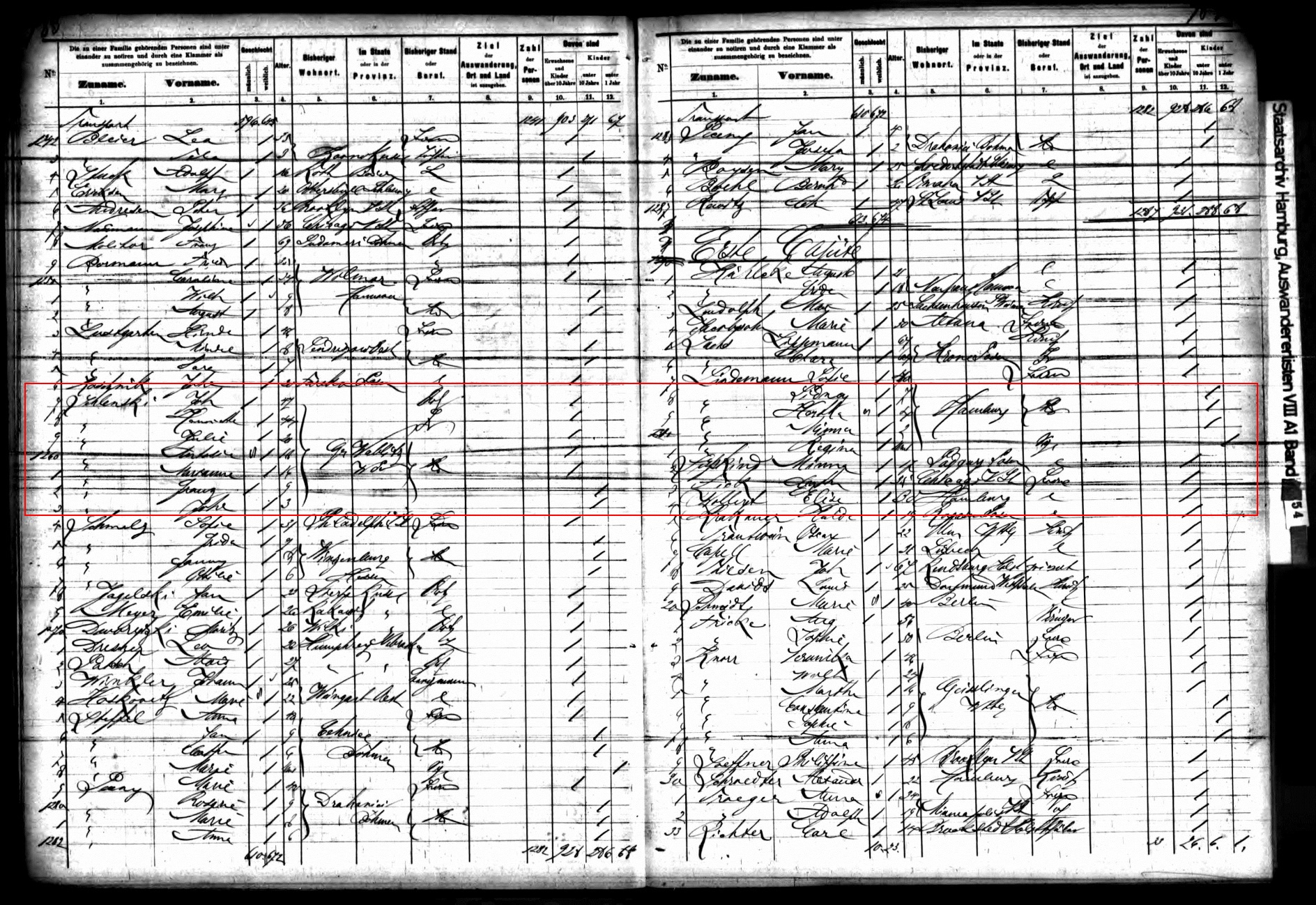 Below are sections from the arrival passenger list for the