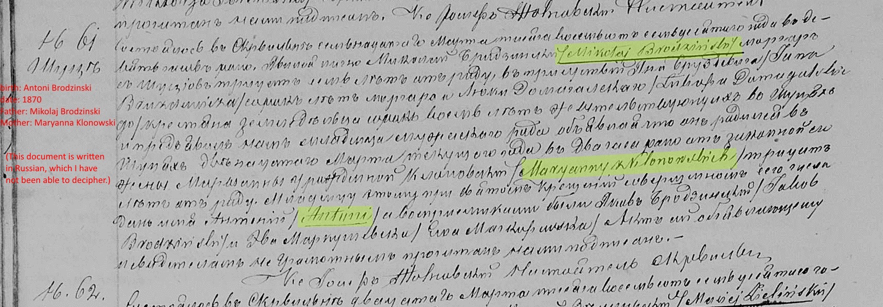 Nicholas Brodzinski b: December 1, 1833 in Zatorowizna, Poland immigrated: unknown d: unknown |