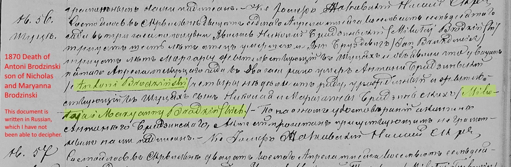 Nicholas died sometime during or after 1887. I have not been able to find any information on his death or whether or not he emigrated to the United States. I don't believe he ever did, most likely having died in Poland.