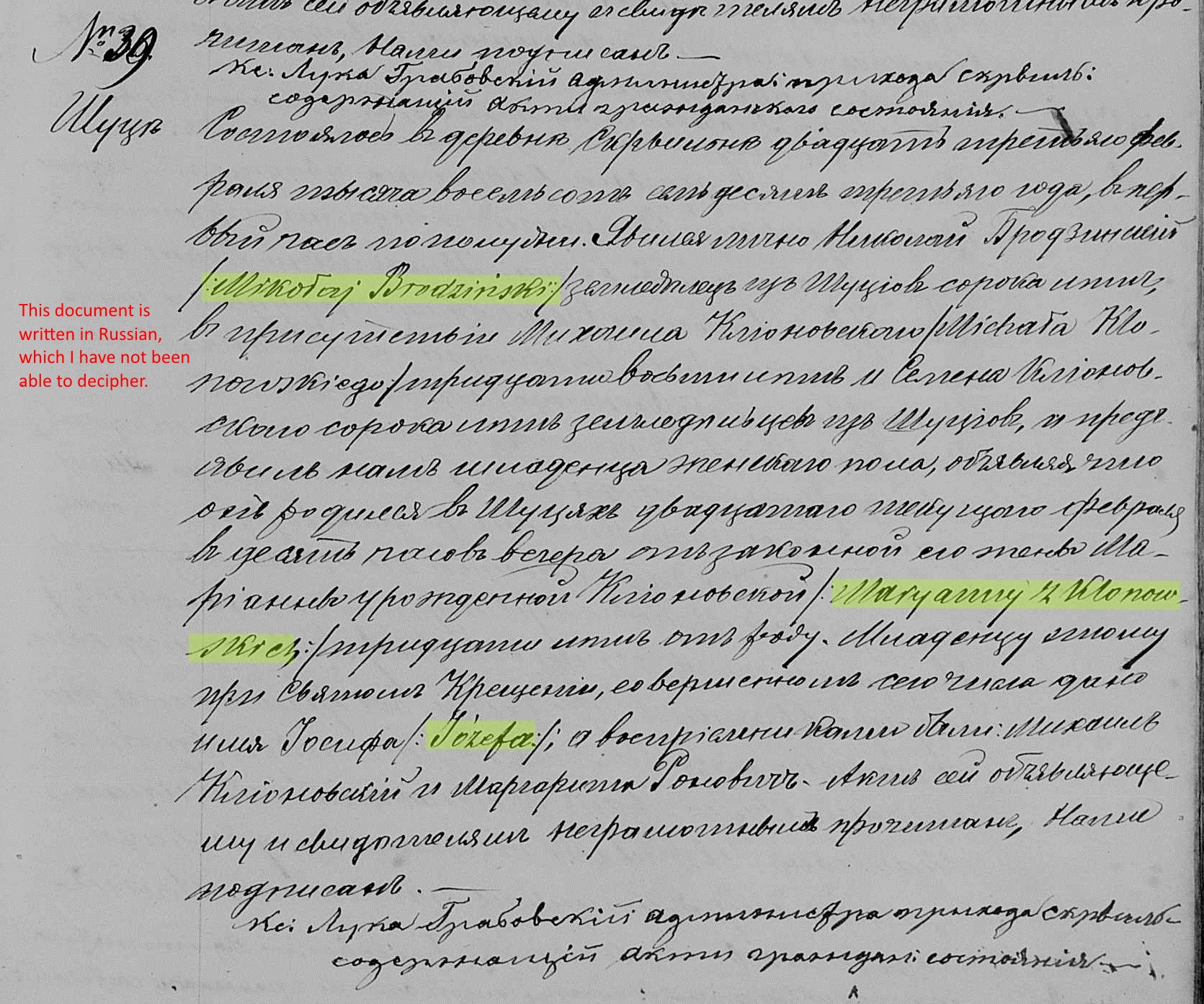 The couple was very prolific! In a span of 17 years, they produced 10 children. In chronological order, Albert and John were born in Zatorowizna, the first Katarzyna and Lukasz were born in Niemcowizna, and the remaining children were all born in Szucie. At least two children (Katarzyna and Anton) died in infancy. Interesting that Nicholas had both a sister and a daughter named Katarzyna that died in infancy. That didn't stop them from using the name however, as Nicholas and Marga gave the name Katarzyna to their last child, born in 1875. I have been unable to find any additional information on that Katarzyna, as well as for Josefa or Lukasz. The other 5 children lived full lives and emigrated to the United States, including Margaretta "Sofia" Brodzinski - Lawrence's mother!